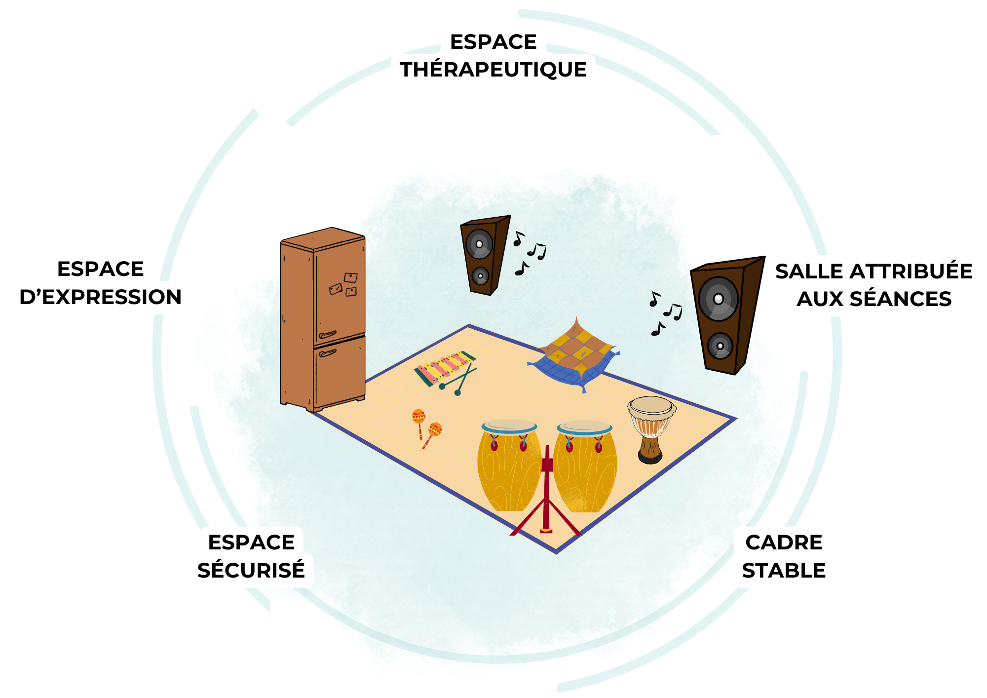 Les séances de musicothérapie se déroulent dans un cadre précis :